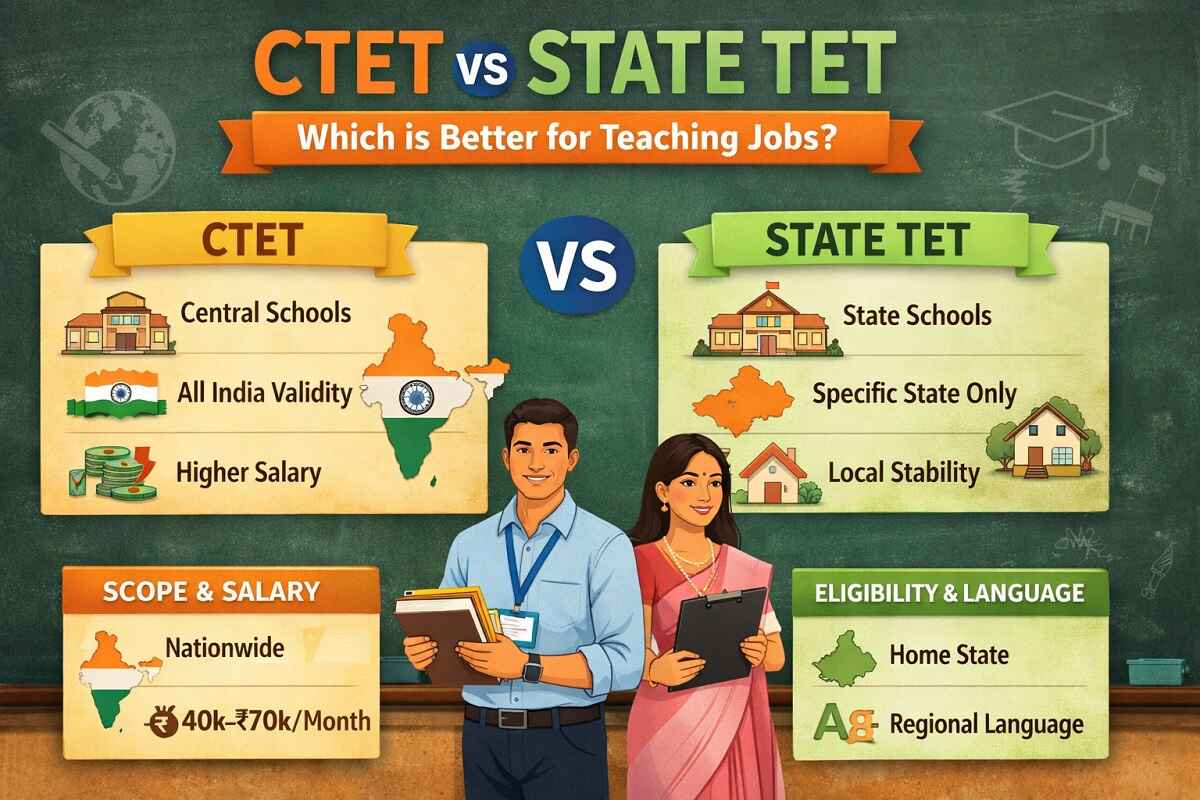 Choosing between CTET and State TET is one of the most important decisions for anyone aiming to become a government teacher in India. While both exams serve the same core purpose—qualifying candidates for teaching jobs—they differ significantly in scope, eligibility, and career opportunities.