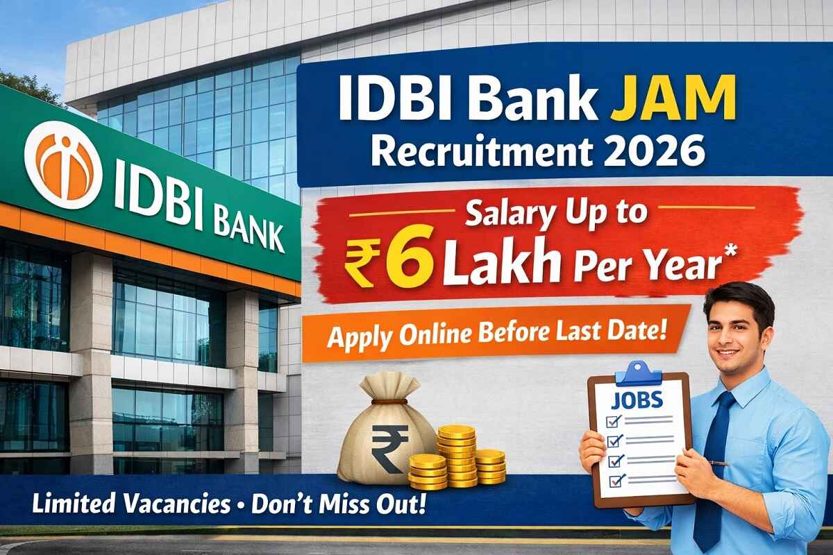 The IDBI Bank JAM Recruitment 2026 notification has created excitement among banking job aspirants across India. The Industrial Development Bank of India (IDBI) has announced recruitment for the Junior Assistant Manager (JAM) posts, offering an attractive salary package that can reach around ₹6 lakh per year along with additional benefits.
