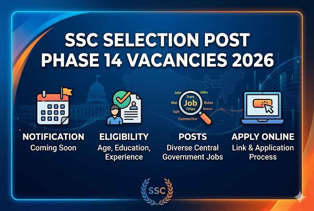 The Staff Selection Commission (SSC) is expected to release the SSC Selection Post Phase 14 Vacancies 2026 notification soon, offering thousands of government job opportunities for candidates with qualifications ranging from 10th pass to graduates.